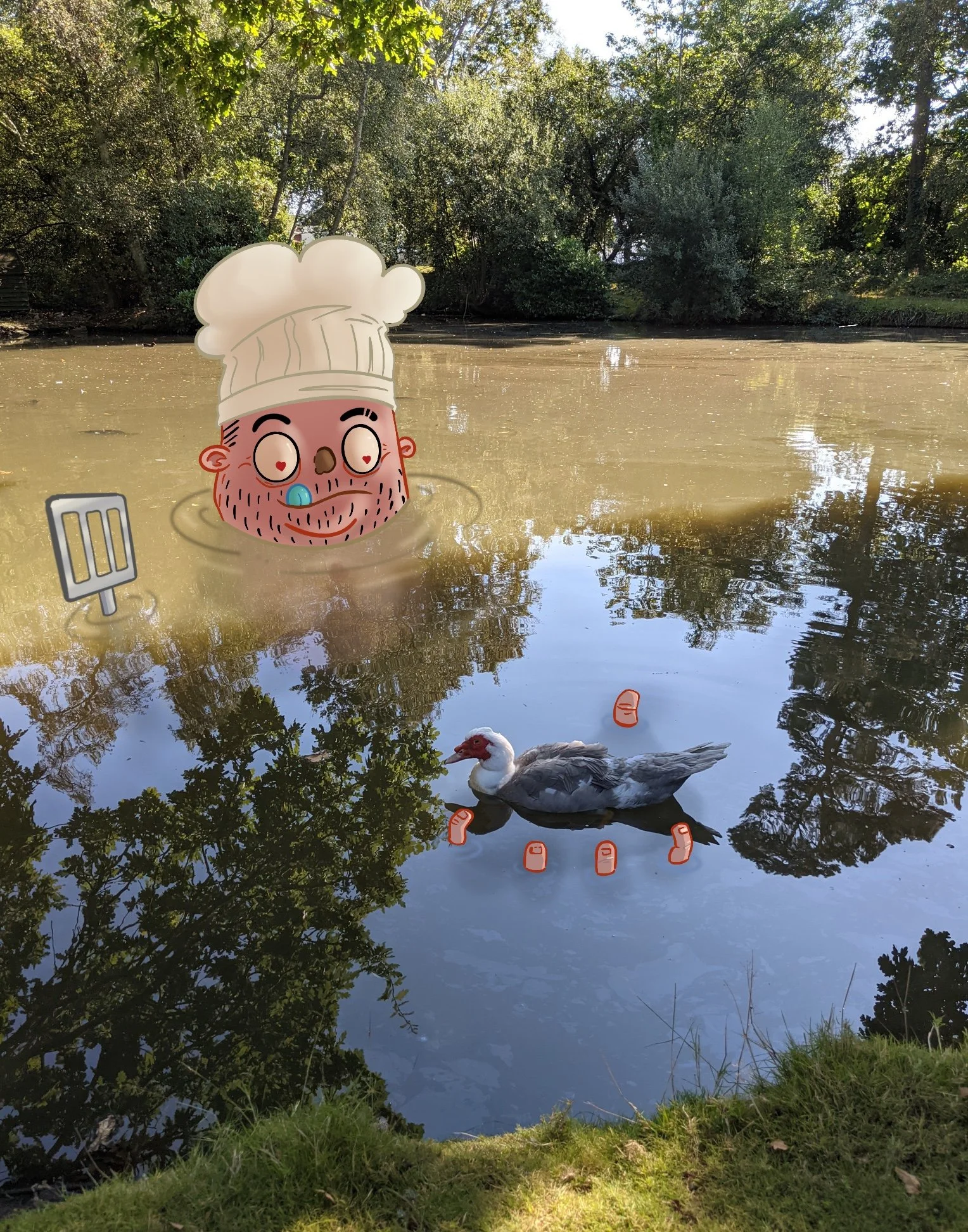 This series combines digitally drawn characters with real-world photographs, creating a contrast between the colourful, imaginative figures and their realistic surroundings.